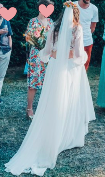 Posté le 06/01/2024 à 09:58"Avant même d'imaginer me marier, j'avais vu les incroyables réalisations de Deborah et en particulier une robe toute de fleurs parsemée, comme un de ces magnifiques alpages de plein été où j'aime tant me poser et rêver. Aussi, lorsque le projet de mariage est né, la première chose que j'ai faite fut de la contacter. Je souhaitais des fleurs, de la couleurs, un pas de côté et Deborah a su lire dans mes pensées et transformer mon lien émerveillé envers la nature en une robe encore plus extraordinaire que je ne l'aurais imaginée. Des doigts de fées, une écoute sensible et des convictions partagées, je ne pouvais rêver mieux pour ce jour hors du temps avec cette robe de fée de la forêt dans une atmosphère enchantée. Un immense merci Deborah, seul regret, de n'avoir pu échanger de vive voix que brièvement vu l'éloignement mais j'espère que nos chemins se recroiseront."